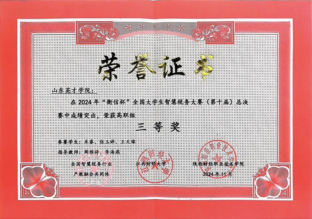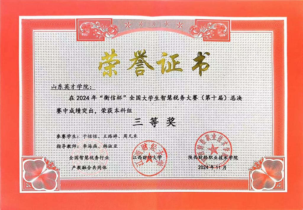 11月24日,由全国智慧税务行业产教融合共同体主办的“衡信杯”全国大学生智慧税务大赛(第十届)专科组、本科组总决赛落下帷幕。决赛中竞争激励,共有120支本科院校参赛队、50支高职院校参赛队,商学院参赛团队获得总决赛一项本科组三等奖与两项专科组三等奖的优异成绩。