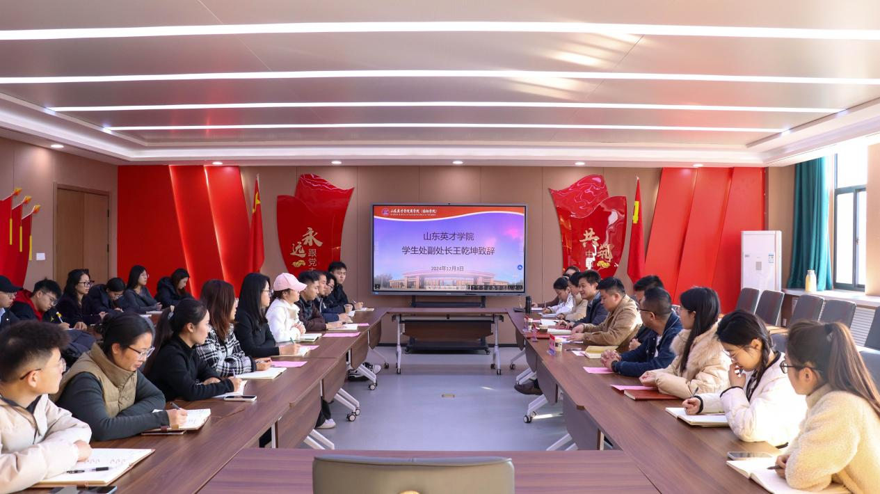 为深入学习贯彻全国高校思想政治工作会议精神和落实《山东英才学院辅导员工作室建设与管理办法(试行)》的相关要求,进一步加强辅导员队伍建设,提升专业素养,我院于12月3日在商学院(国际学院)楼408召开商学院(国际学院)辅导员工作室启动仪式暨辅导员沙龙第一期会议。出席本次会议的有山东英才学院学生工作处副处长王乾坤,商学院(国际学院)党总支书记、院长赵坤,党总支副书记徐宜慧,全体辅导员。会议由商学院(国际学院)党总支副书记徐宜慧主持。