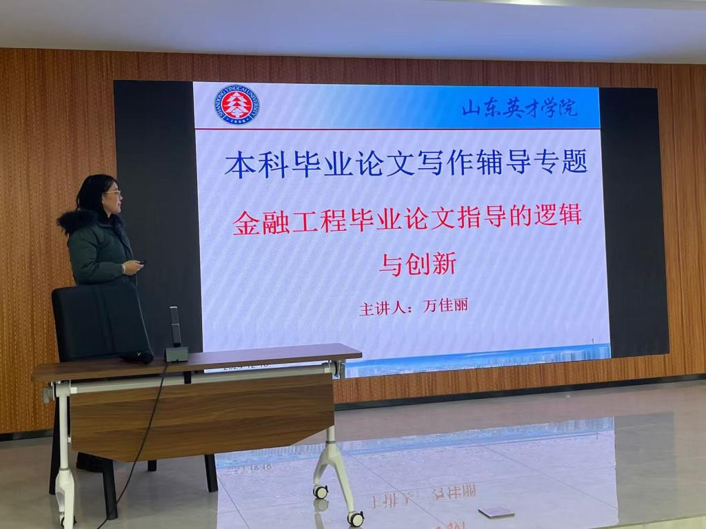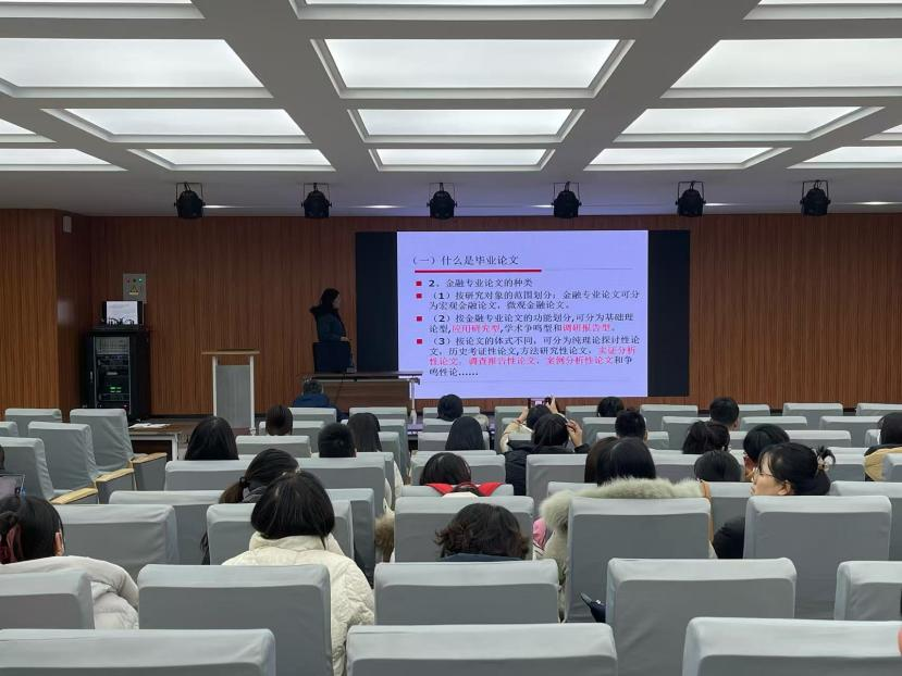 12月10日下午,商学院(国际学院)金融系在明德楼学术报告厅举办了一场以“金融工程专业论文指导的逻辑与创新”为主题的毕业论文指导讲座。此次讲座由金融系专业负责人万佳丽副教授主讲,旨在帮助指导教师更好地理解金融工程专业毕业论文的写作要求与技巧,提高毕业论文的指导质量。商学院(国际学院)院长赵坤、副院长殷永生、全体教师参加了本次讲座,共同探讨论文指导的规范与策略。