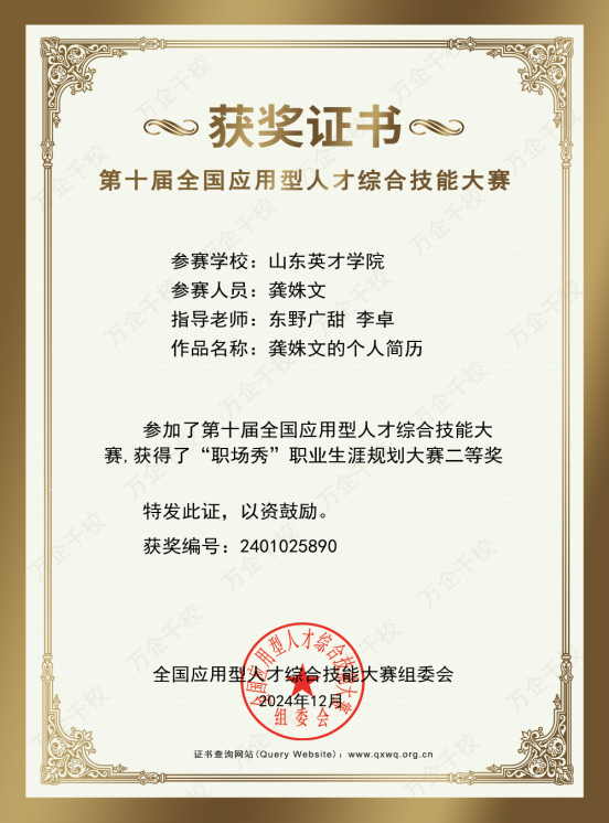 第十届全国应用型人才综合技能大赛于12月20日落下帷幕,此次竞赛中,山东英才学院商学院参赛团队获得总决赛一等奖一项、二等奖八项和三等奖多项的优异成绩。