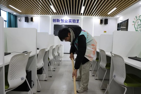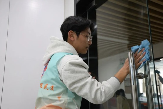 商学院(国际学院)学生干部们积极行动,对实训中心进行了全面而细致的清理。他们分工协作,认真擦拭设备,整理桌椅,清扫地面,确保每个角落都一尘不染。经过几个小时的共同努力,实训中心焕然一新,设备整齐,环境明亮。学生干部们以实际行动展现了责任与担当,为同学们创造了一个舒适、高效的学习实践空间,也为新学期的教学活动做好了充分准备。