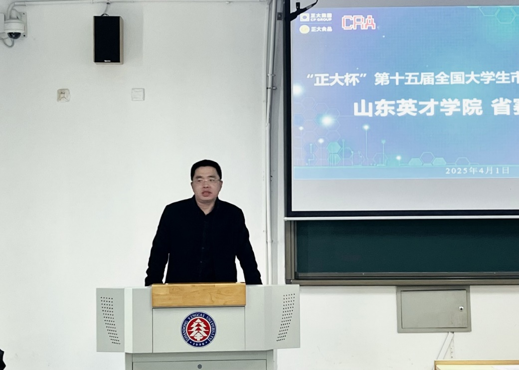 2025年3月27日,山东英才学院商学院举办“正大杯”第十五届全国大学生市场调查与分析大赛省赛选拔赛。商学院副院长殷永生在赛前致辞中强调,大赛不仅是专业能力的试金石,更是培养学生社会责任感、服务意识和团队协作精神的重要平台,希望同学们以赛促学,在实践中提升综合能力。