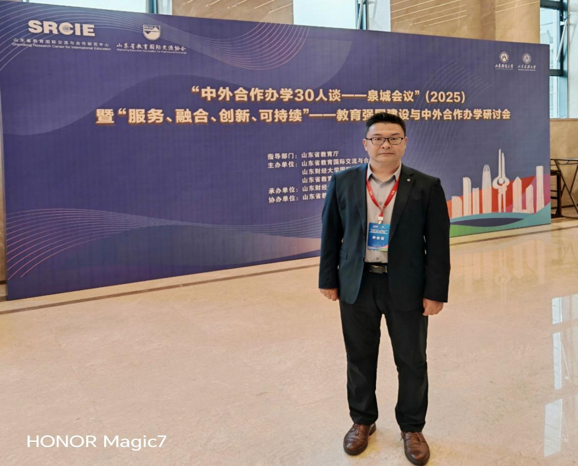 2025年5月8-10日,第五届“中外合作办学30人谈——2025泉城会议”暨“服务、融合、创新、可持续”——教育强国建设与中外合作办学研讨会在山东济南成功举办。山东英才学院商学院(国际学院)院长赵坤受邀出席此次会议,与众多国内外专家学者、教育界人士共商中外合作办学发展。
