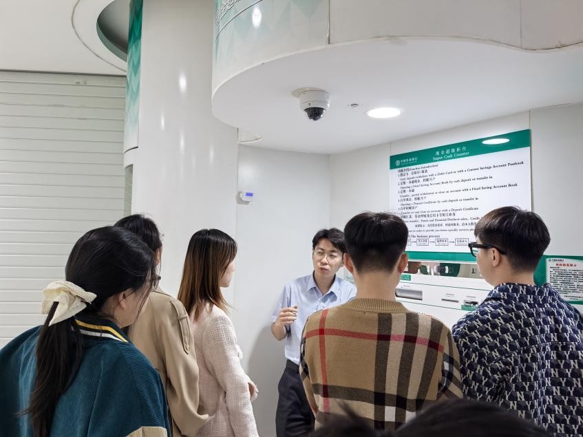 专题报告完成后,学生们分组参观了对公服务区、VIP理财室、智能柜台等核心功能区,学生们通过观察客户分流系统、智能叫号设备的运作,深入理解“以客户为中心”的服务理念。