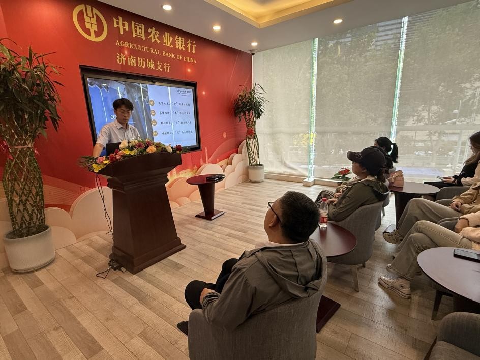 2025年5月23日,商学院金融工程2201班学生在金融系主任谷振涛和冯晴、王玉玺两位老师的带领下,赴农业银行济南历城支行开展“沉浸式”金融实践教学活动。此次活动是学院实践教学的重要环节,旨在通过实地观摩提升学生的专业水平和职业认知,同时为开展教育教学改革拓展思路。
