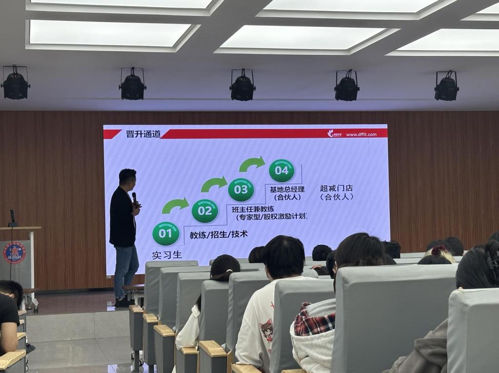 宣讲会上,冯磊围绕行业溯源、企业介绍、产品技术、发展机遇四大核心板块展开详细阐述。在行业溯源环节,他深入剖析了减重行业的发展脉络;企业介绍部分,全面展示了巅峰减重集团的发展历程、企业文化和企业实力;产品技术板块,介绍了集团在减重领域的专业技术与特色产品;在发展机遇板块,冯磊指出,随着我国肥胖流行趋势不断增加,减重已成为人们生活中的刚性需求,同时国家实施的健康中国战略,更为减重行业带来了前所未有的发展契机。此外,他还深入解读了企业独特的商业模式,让同学们对行业和企业有了更为全面和深入的认识。