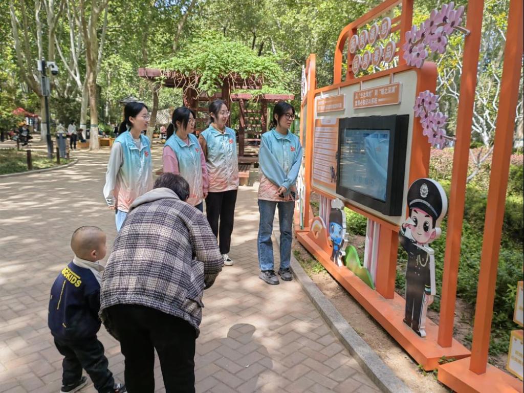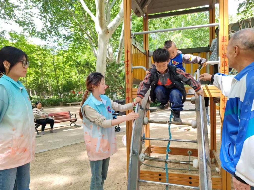 在公园娱乐设施旁,女大学生们化身安全小卫士。她们仔细检查设施部件有无松动损坏,提醒游玩儿童注意安全事项,制止危险行为,保障游客娱乐时的安全。