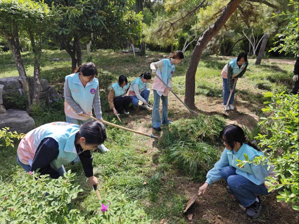 2025年4月24日上午9时,山东省济南市历城区百花公园迎来来自山东英才学院商学院(国际学院)本科电子商务2301的9名大学生,她们的到来为公园增添温暖与活力。