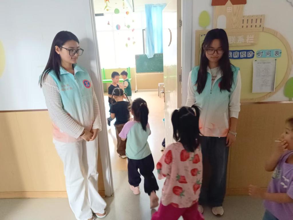 随着孩子们陆续入园,实践成员迅速投入到守护工作中。在上下课途中,实践成员紧紧护在孩子们的左右,确保他们安全往返于教室与活动场地之间。