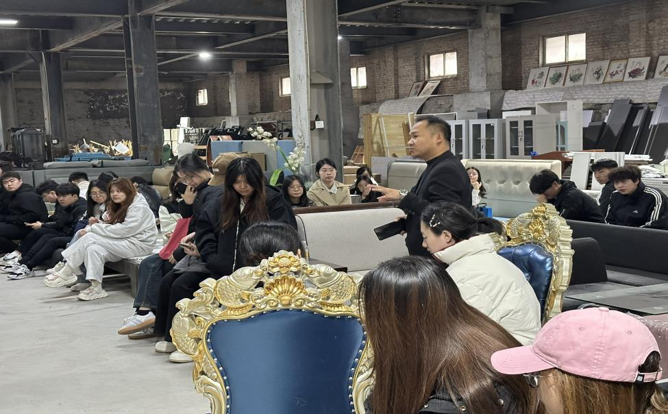 在项目负责人卢总的陪同下,师生一行深入参观了三丰新旧二手交易市场的总仓运营中心。作为济南地区规模领先的二手商品集散平台,该市场通过创新的线上线下联动模式,构建了涵盖回收、质检、翻新、销售的一体化循环经济链条,为同学们提供了一个观察现代服务业与绿色经济创新实践的鲜活窗口。
