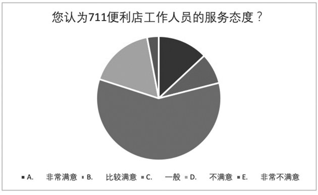 从调查问卷中还得出,59%的顾客表示7-11店员服务态度一般,而不满意其服务态度达到17%,由于7-11便利店的员工服务态度曾经一直是其企业特色,故该问题被我们选入深度访谈,对其进行详细了解。受访者认为近几年随着天津市 内7-11便利店的不断增多,其员工出现态度消极,高峰时期出现不耐烦的情况越发增多,若便利店不提供曾经优质的服务甚至继续出现消极情况,长久下去必然难以再抓住顾客的心,导致顾客流失。如图4: