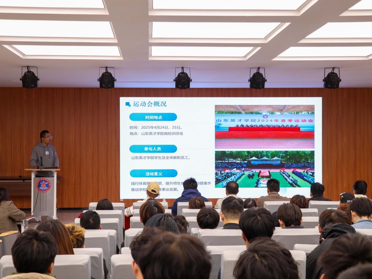 2025年3月19日,我校2025年春季运动会工作启动会议在明德楼300隆重召开。会议围绕运动会项目安排、规则解读、分工部署及展现体育精神等几个方面展开,充分展现了学校对体育事业的高度重视及全体师生的积极风貌。