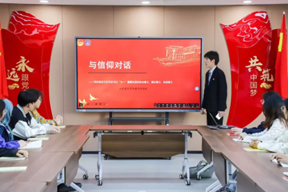 随后,商学院团委组织部孔凡翔同学带领大家深入探讨“与信仰对话”这一主题。通过剖析不同历史时期青年因信仰而坚定前行的案例,引导团员们思考信仰对于人生的重要意义。鼓励大家树立正确的信仰,将个人信仰与党和国家的事业紧密相连,在信仰的指引下奋勇向前。