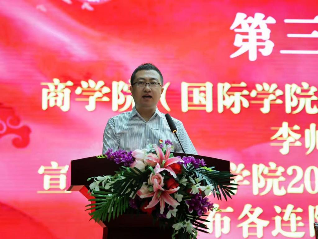 商学院(国际学院)党总支书记、院长赵坤首先代表全院教职工对2025级新生表示热烈欢迎,并详细介绍了学院的办学特色与发展成就。他从"大学第一课"军训出发,提出四点期望:同学们要做到高度重视军训课程,严格自律树立目标,积极适应新环境,正确处理人际关系。最后,他勉励新生将个人理想融入区域发展和社会进步,不负时代使命,并表示全院教师将与新生并肩前行、共同成长。
