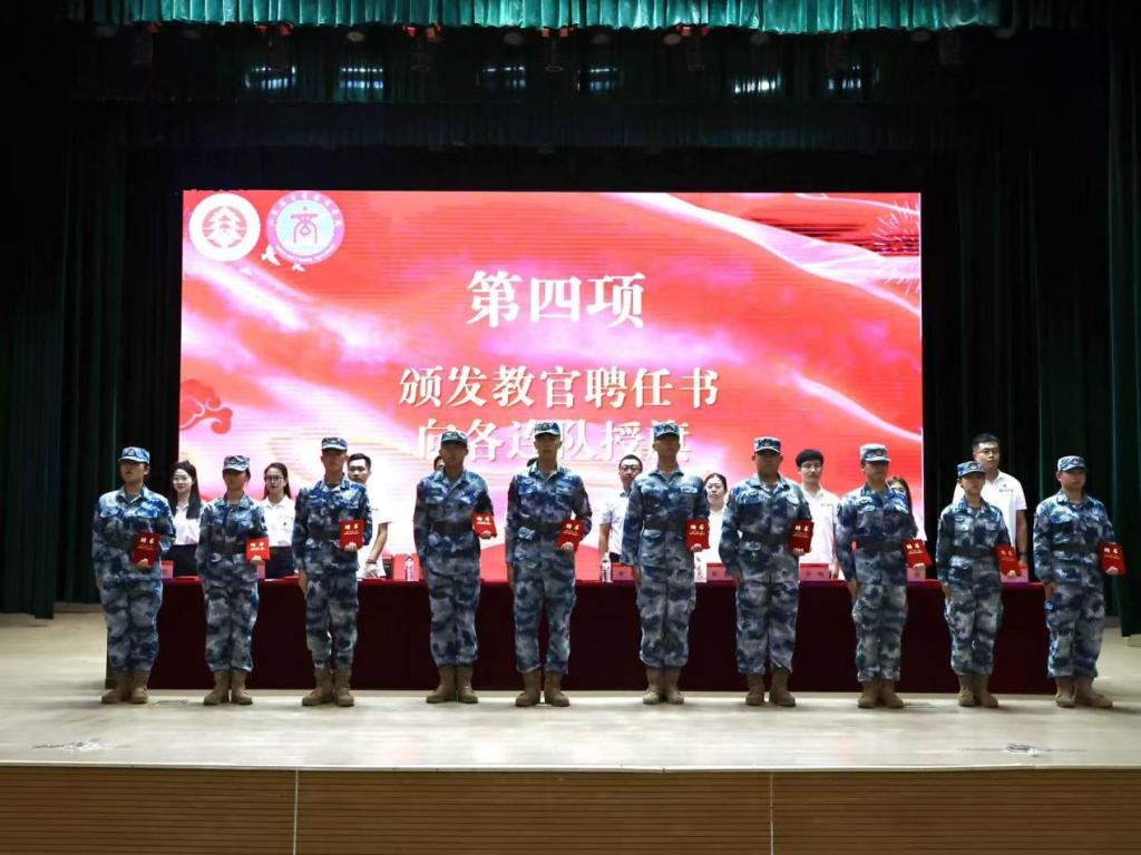 党总支副书记李帅宣布成立商学院(国际学院)2025级新生军训营,并宣读了各连队连长的任命决定。他指出,军事训练是大学生思想政治教育的重要环节,是培养爱国主义精神和集体主义观念的重要途径。