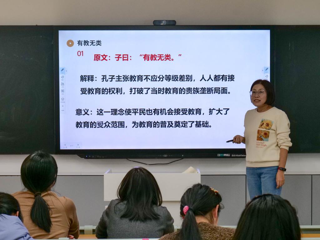 分享会上,钟主任首先从“有教无类”的教育理念切入,强调孔子打破阶级壁垒、倡导教育普惠的思想对当下的启示。她指出:“‘有教无类’不仅是古代教育民主化的开端,更为现代教育公平提供了文化根基。教师应以开放的胸怀接纳每一位学生,让教育真正成为照亮生命的明灯。”