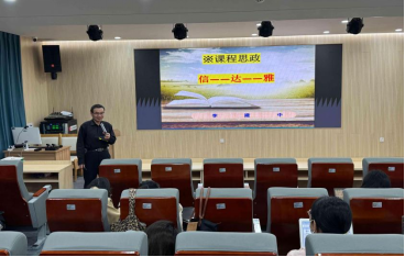 文化与通识教研室李建中副教授从传统文化的“信、达、雅”入手,分享了《阅读与写作》和《大学语文》两门课程中的课程思政案例融入经验。他特别指出,当前的课程思政建设存在泛化、定位不够清晰以及学生兴趣不足等问题。李老师以“大学之道”为案例,通过孟子荀子善恶理念对比讲授和视频播放,生动展示了思政与相关课程融合形式,提出了“挖掘思政着眼点—滴水穿石”的理念方法,为与会教师提供了新的思政融合思路。