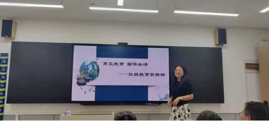 在教育改革方面,孙老师强调教师应成为传统与现代之间的“摆渡人”,以生动的案例展示了如何借助数字技术,如虚拟现实、增强现实等,让古老的文学作品焕发出新的生机与活力,让学生在科技的辅助下更好地理解和感受文化的魅力,实现教育改革的温情对话。孙老师还分享了自己在丰富学养方面的努力和感悟,她将自己比作思想的 “采珠人”,在知识的海洋中不断探索,汲取古典文论和前沿科技的智慧,保持对教育事业的敏锐与热忱,为教育事业撷取最珍贵的智慧之珠,并坚信教师的思想应当像古老的银杏,既深扎学术的土壤,又不断萌发新绿的嫩芽。