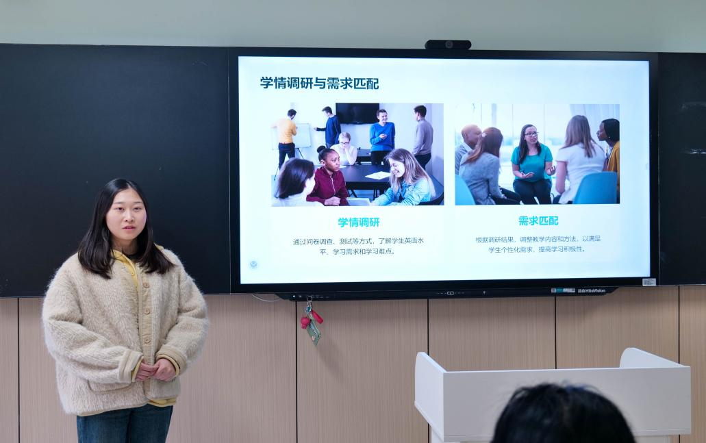 随后,张毅老师分享了备课心得与教学经验。她强调备课要注重内容的准确性与趣味性,同时充分考虑学生的实际需求和学习特点。张老师通过视频展示了学生的英语学习成果,生动的教学实例和显著的成效,为其他教师提供了具有参考价值的教学实践范例,赢得了现场阵阵掌声。
