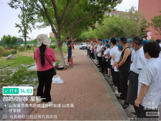 为增强学校餐厅员工的消防安全意识,提升火灾应急处置能力,2025年5月26日,后勤处组织七星园餐厅全体员工以及其他餐厅新入职员工,开展了一场全面深入的消防培训及演练实操活动。此次旨在通过专业指导系统提升餐饮服务人员的消防应急技能,为保障校园师生用餐安全构筑坚实屏障。