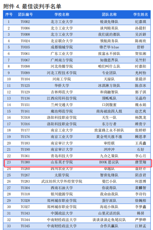全国高校商业精英挑战赛商务谈判竞赛以真实商业场景为背景,模拟企业间商务谈判全过程,重点考察学生在市场分析、策略制定、沟通协调及临场应变等方面的能力。在激烈的竞争中,由王素玲、夏静老师联合指导的“春明景和队”和隋梦飞、夏静老师共同指导的“BOOK思议队”双双斩获全国二等奖;由夏静、王素玲老师指导的“顺势而为队”获得全国三等奖。这一优异成绩,是参赛师生团队共同努力的结晶。