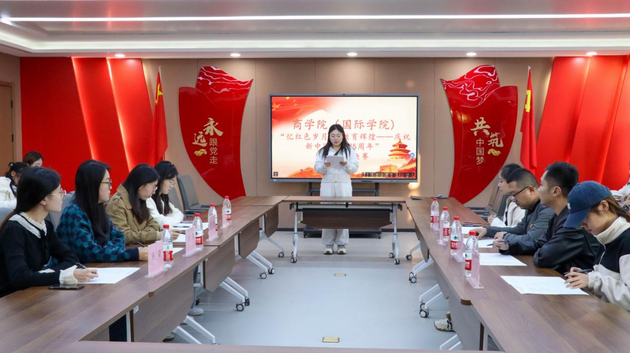 为深入宣传贯彻全国教育大会精神,弘扬革命传统,传承红色基因,激发学生的爱国情怀和奋斗精神,结合校党委工作安排,商学院党总支于10月22日在商学院党员活动室开展“忆红色岁月,铸教育辉煌”演讲比赛。出席本次比赛的有商学院(国际学院)党总支书记、院长赵坤,党总支副书记徐宜慧,教学副院长殷永生,及商学院党总支和各支部委员、师生党员代表。