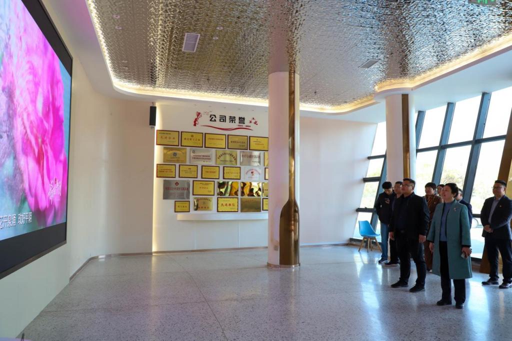 在平阴县委宣传部凌丽部长带领下,朱晓梅书记一行参观了山东华玫生物科技有限公司,观看公司宣传片,了解华玫的发展历程与企业文化,体验公司用平阴玫瑰为原料所产的玫瑰纯露、玫瑰精油等广受消费者喜爱的玫瑰特色深加工产品,对公司在开发创新玫瑰制品、探索玫瑰在化妆品领域的应用等方面进行了全面考察。