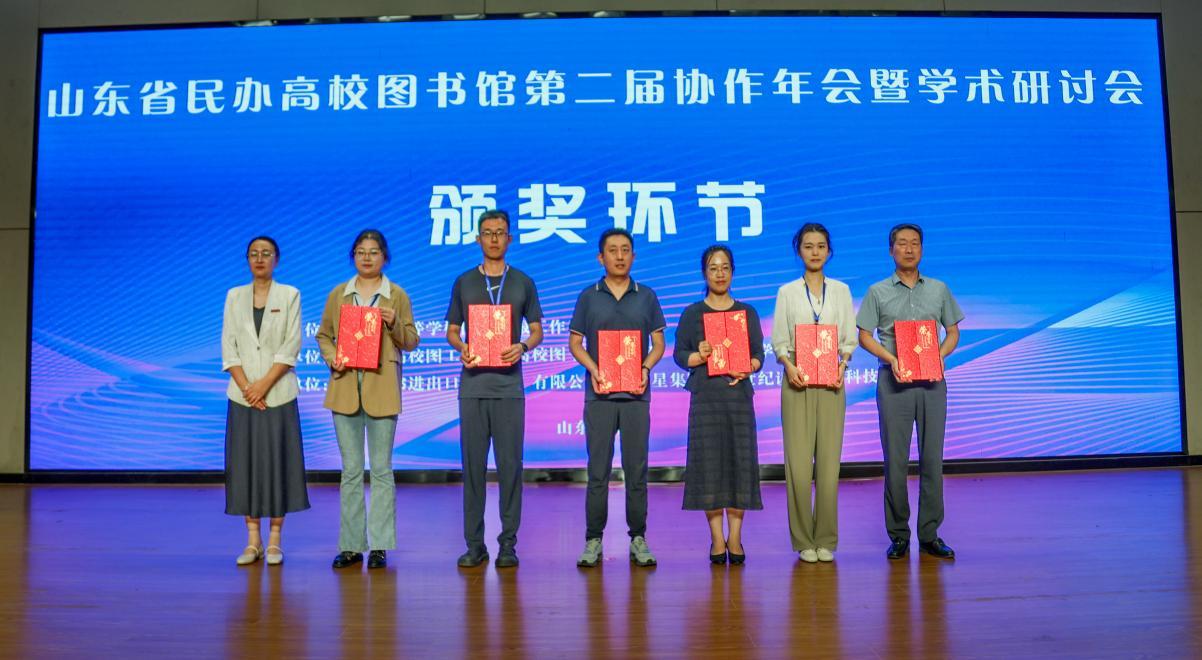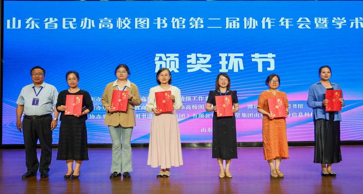 山东省民办高校图书馆第二届协作年会暨学术研讨会于2025年6月11日至13日在山东潍坊理工学院召开,本次会议由山东省高等学校图书情报工作委员会主办,以“融合、创新、发展——民办高校图书馆建设探索与实践”为核心主题,汇聚了来自全省30余所民办高校的120余位图书馆馆长、专家学者及业界同仁,共同探讨新时代民办高校图书馆的转型与发展路径。我校图书馆凭借出色的组织能力和学术成果,斩获“论文最佳组织奖”与“创新案例最佳组织奖”双项集体荣誉,并有多项个人成果获奖,彰显了我校图书馆建设的卓越水平。