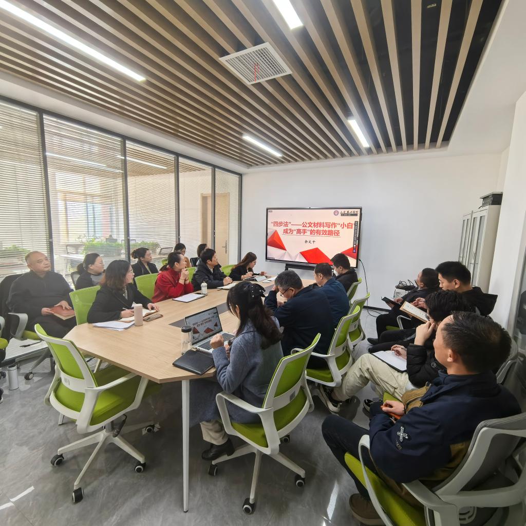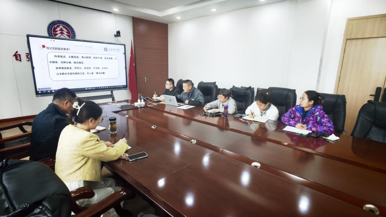 为切实提升图书馆工作人员公文写作能力,规范业务文书处理流程,为图书馆高质量发展提供坚实文字支撑,近日,图书馆组织开展公文写作专题业务培训活动,余文千同志担任主讲人,全馆相关业务骨干及青年员工参加培训。